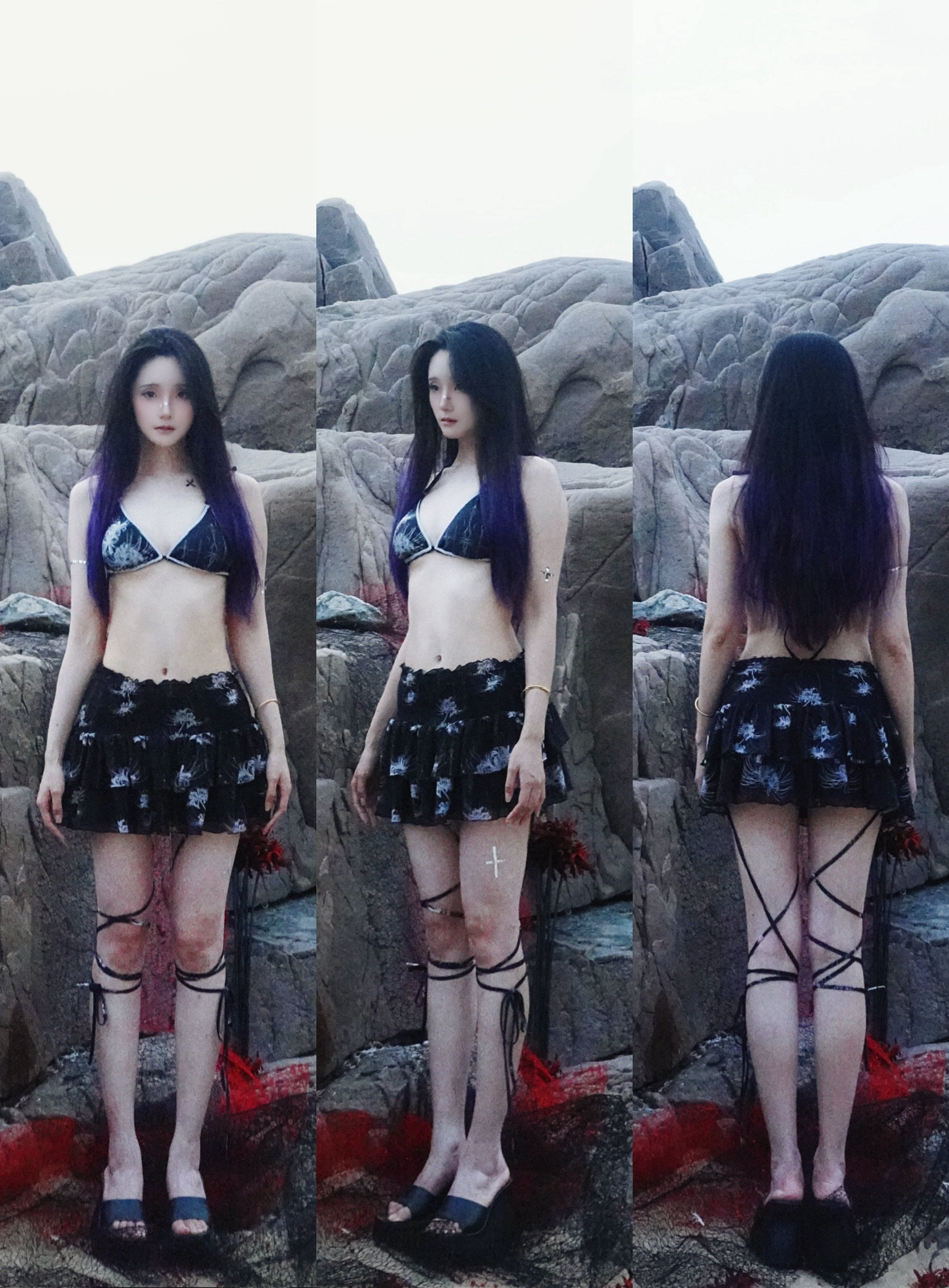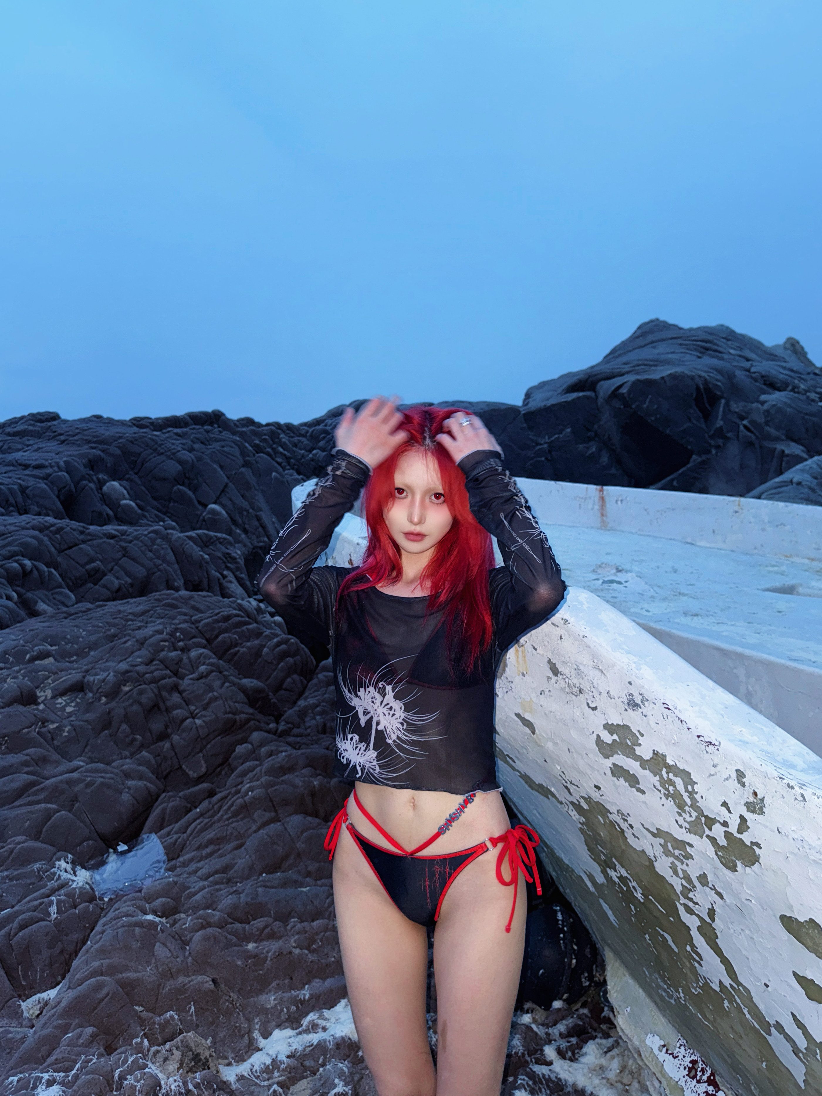 "Cool Kids Never Sleep" Lace Camisole - Black-Indigo