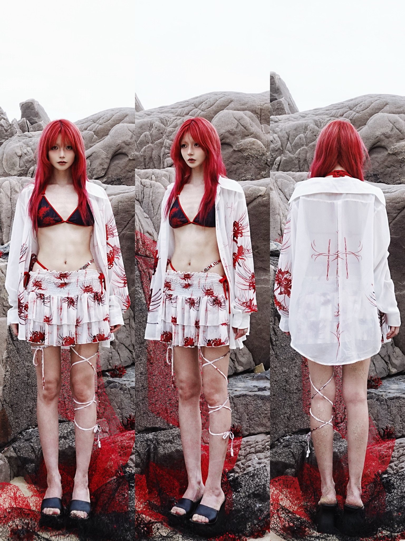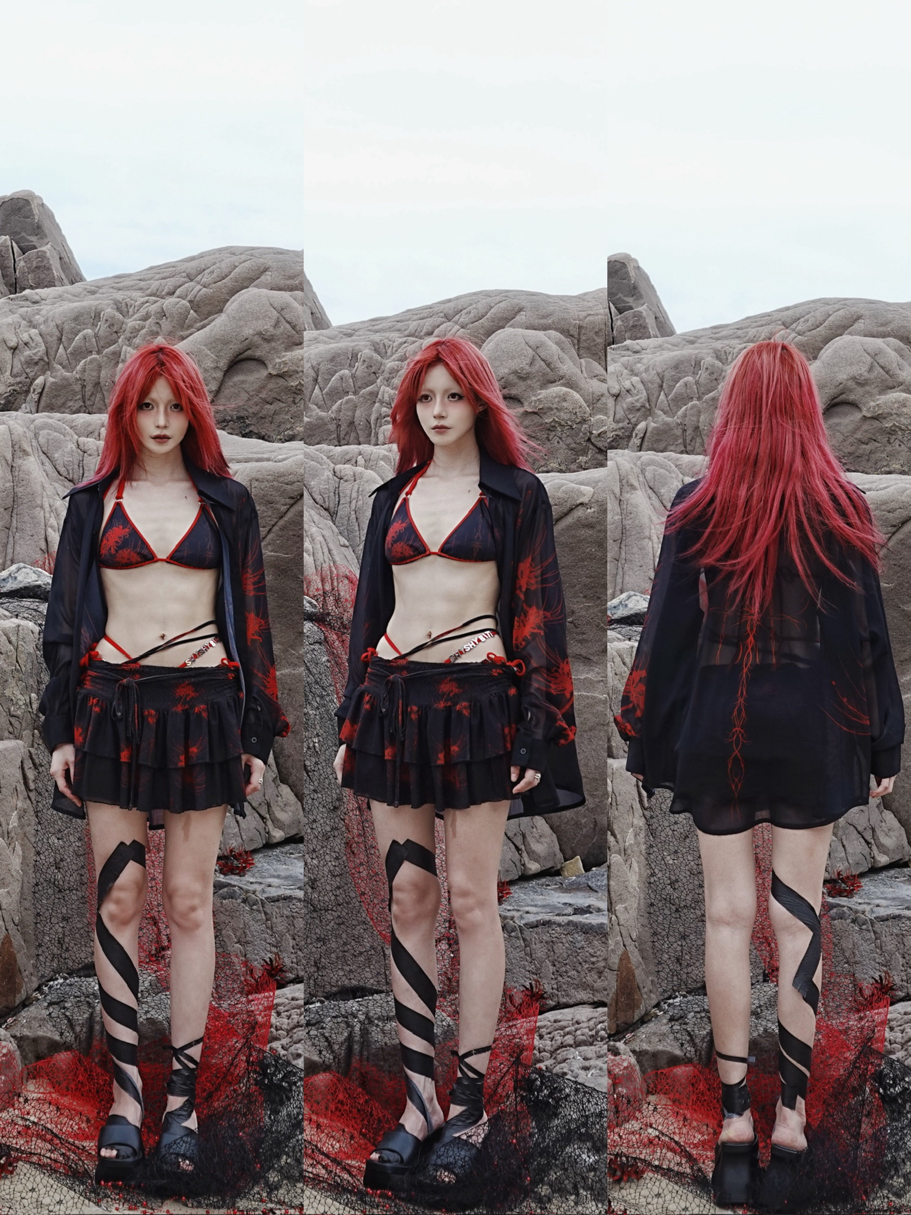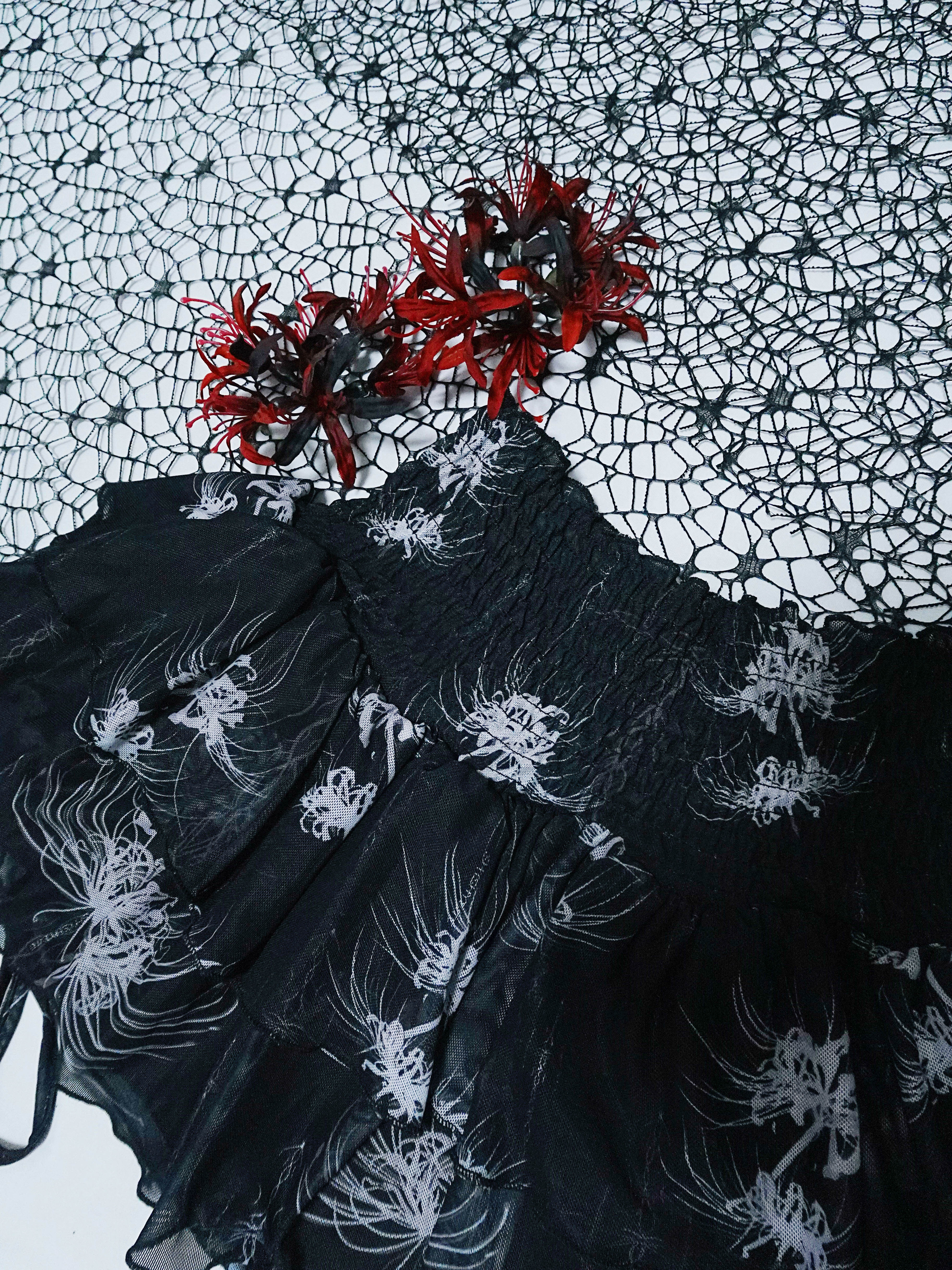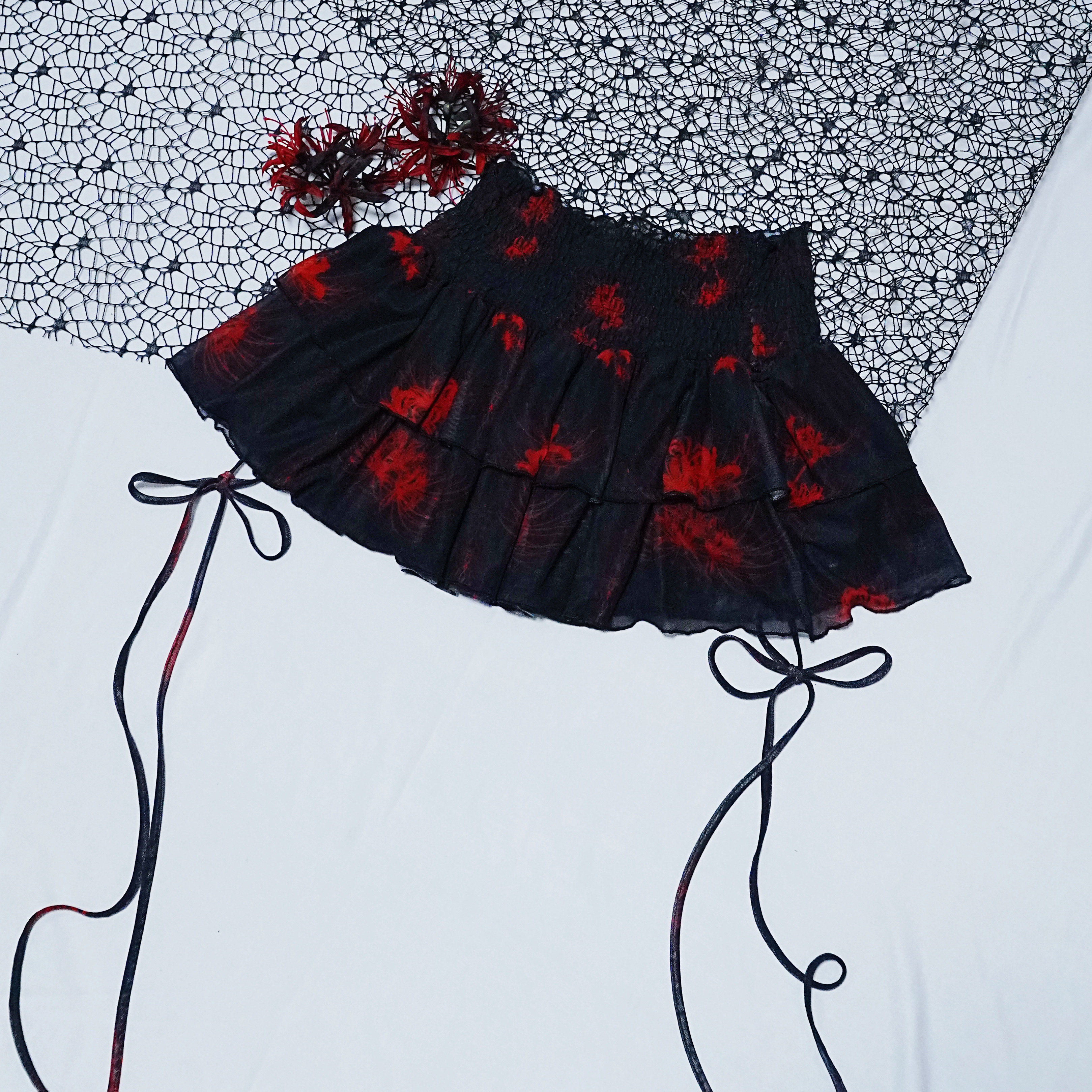 Cross & Spider Lily Full Print Tulle Beach Skirt - Black-Grey