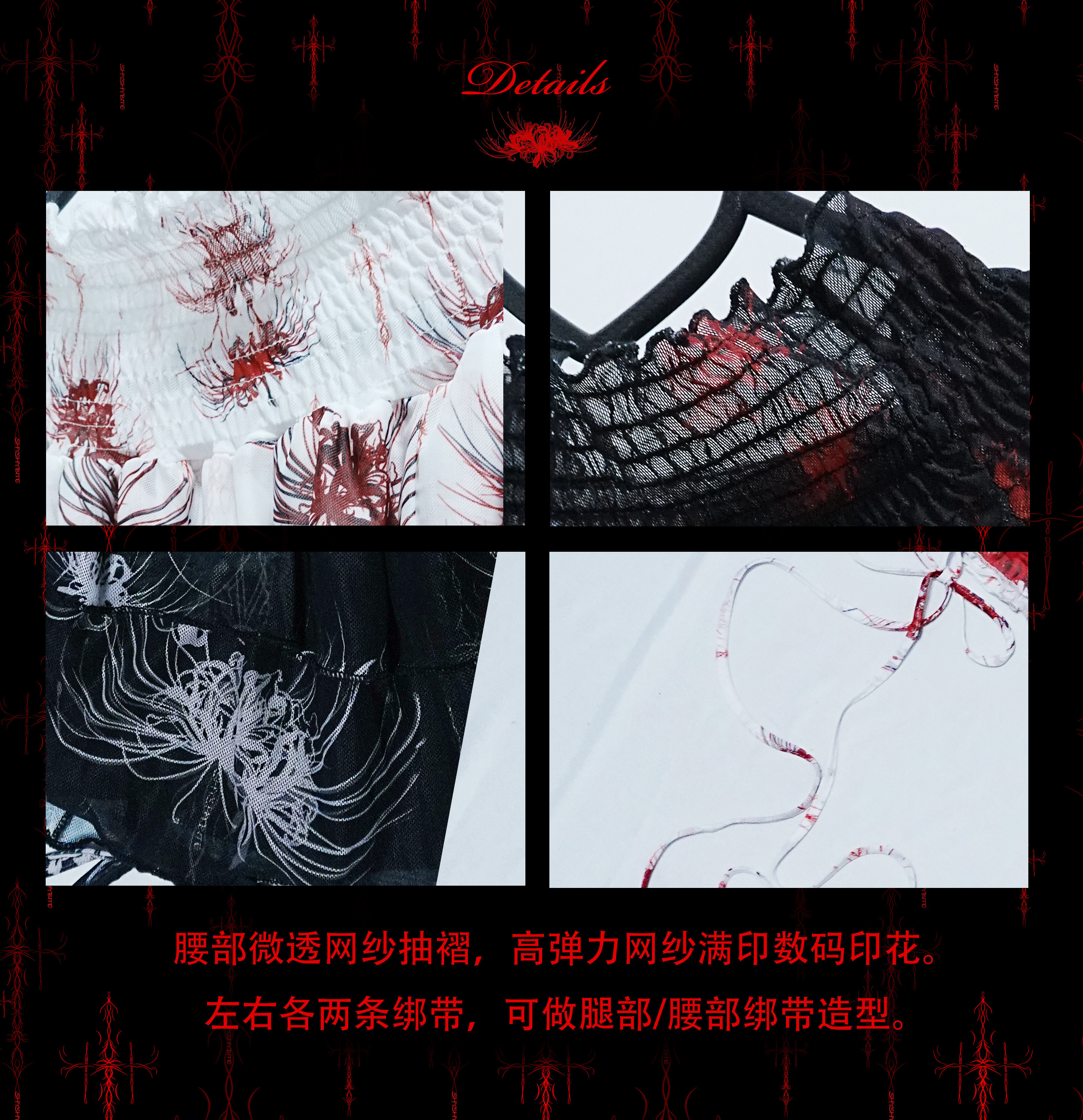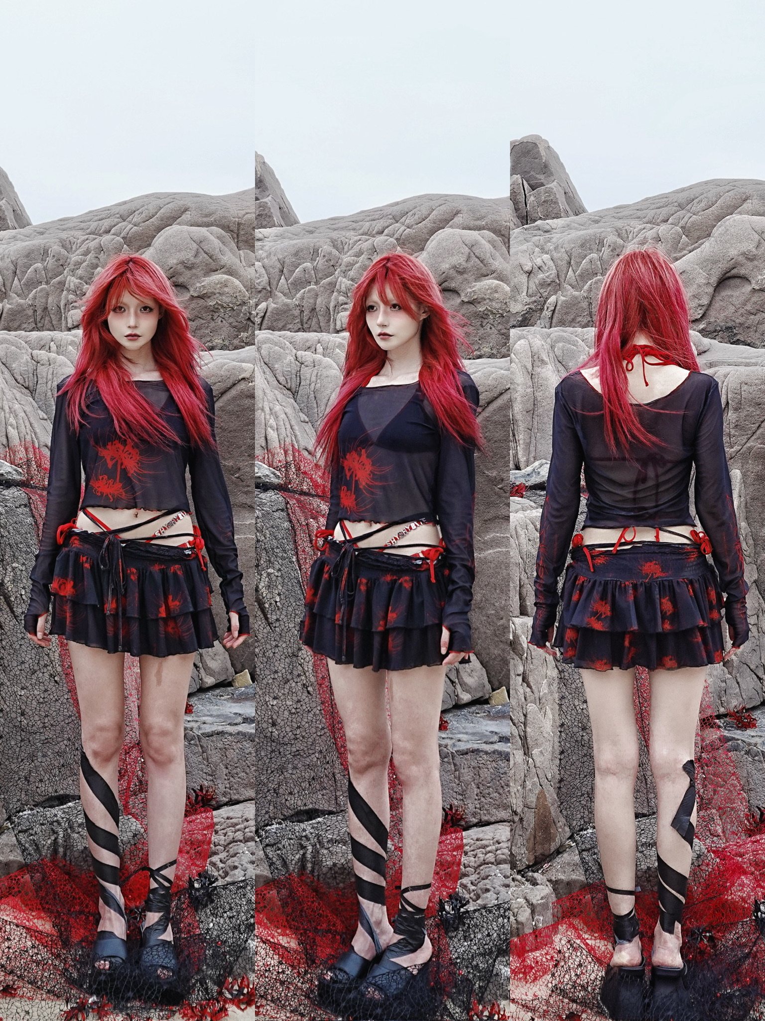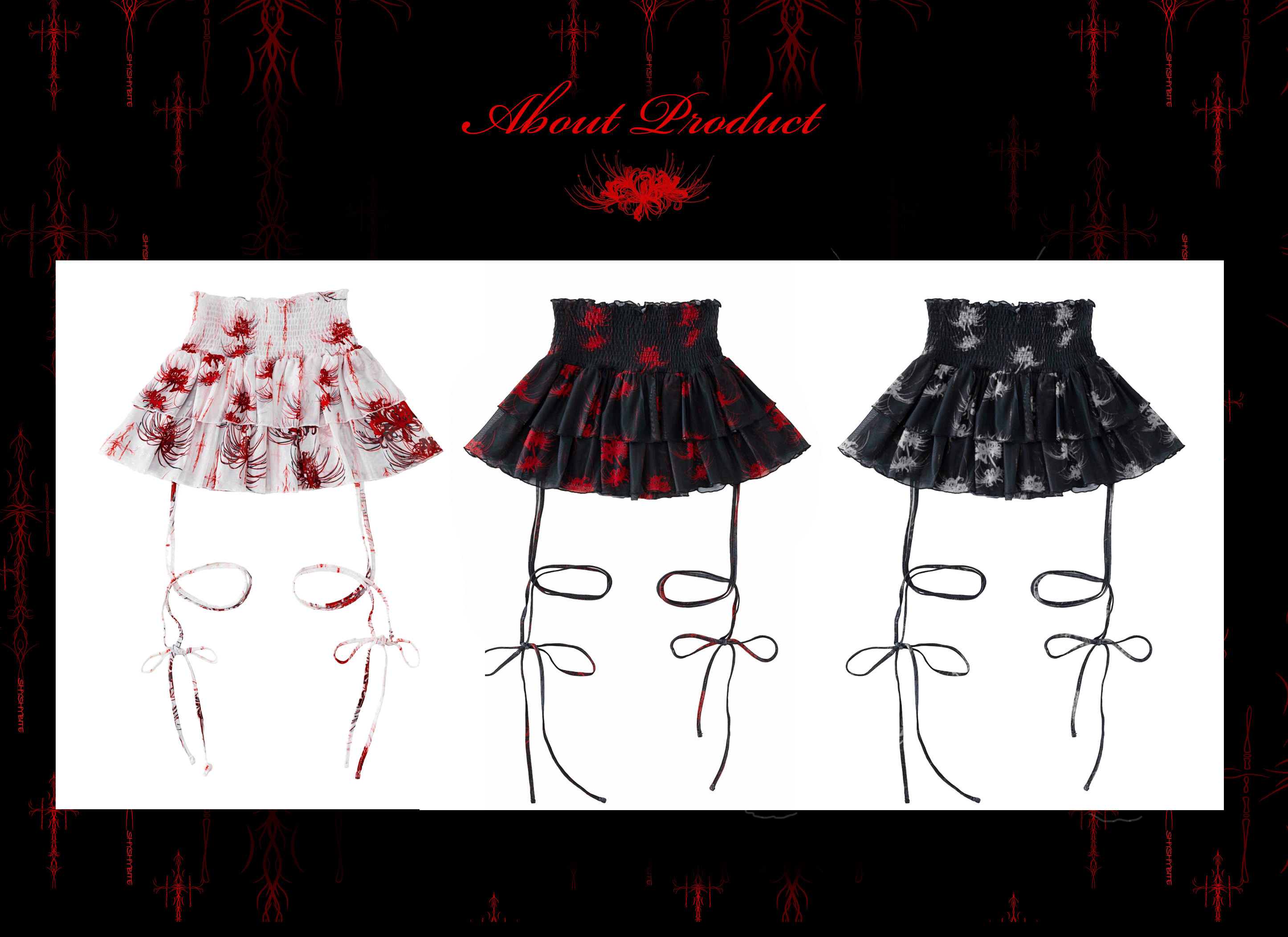 Cross & Spider Lily Full Print Tulle Beach Skirt - Black-Grey