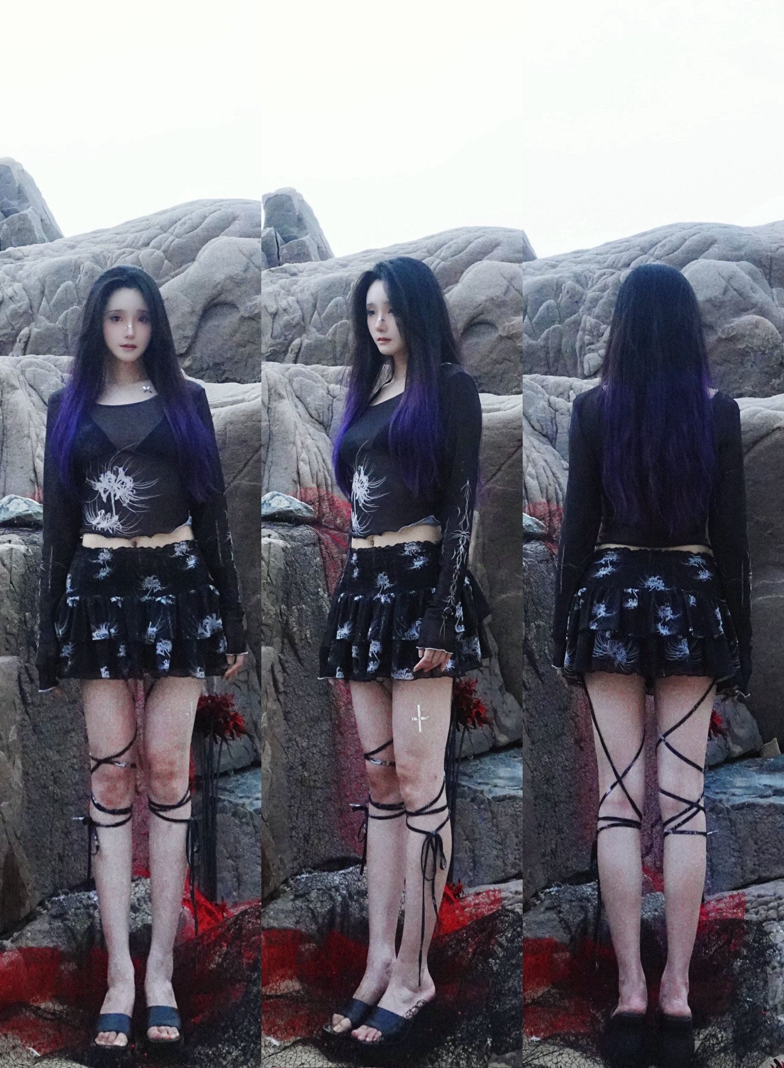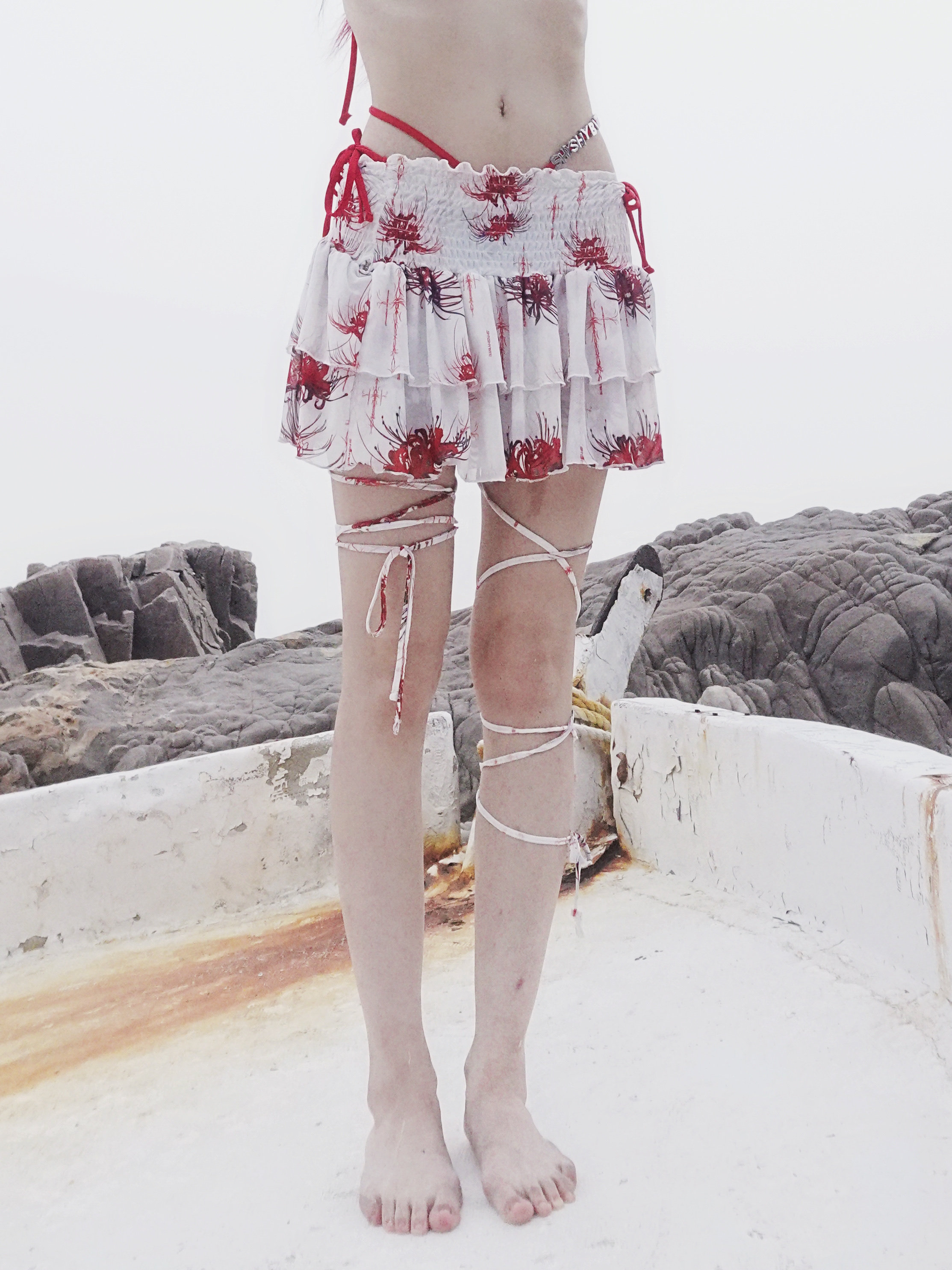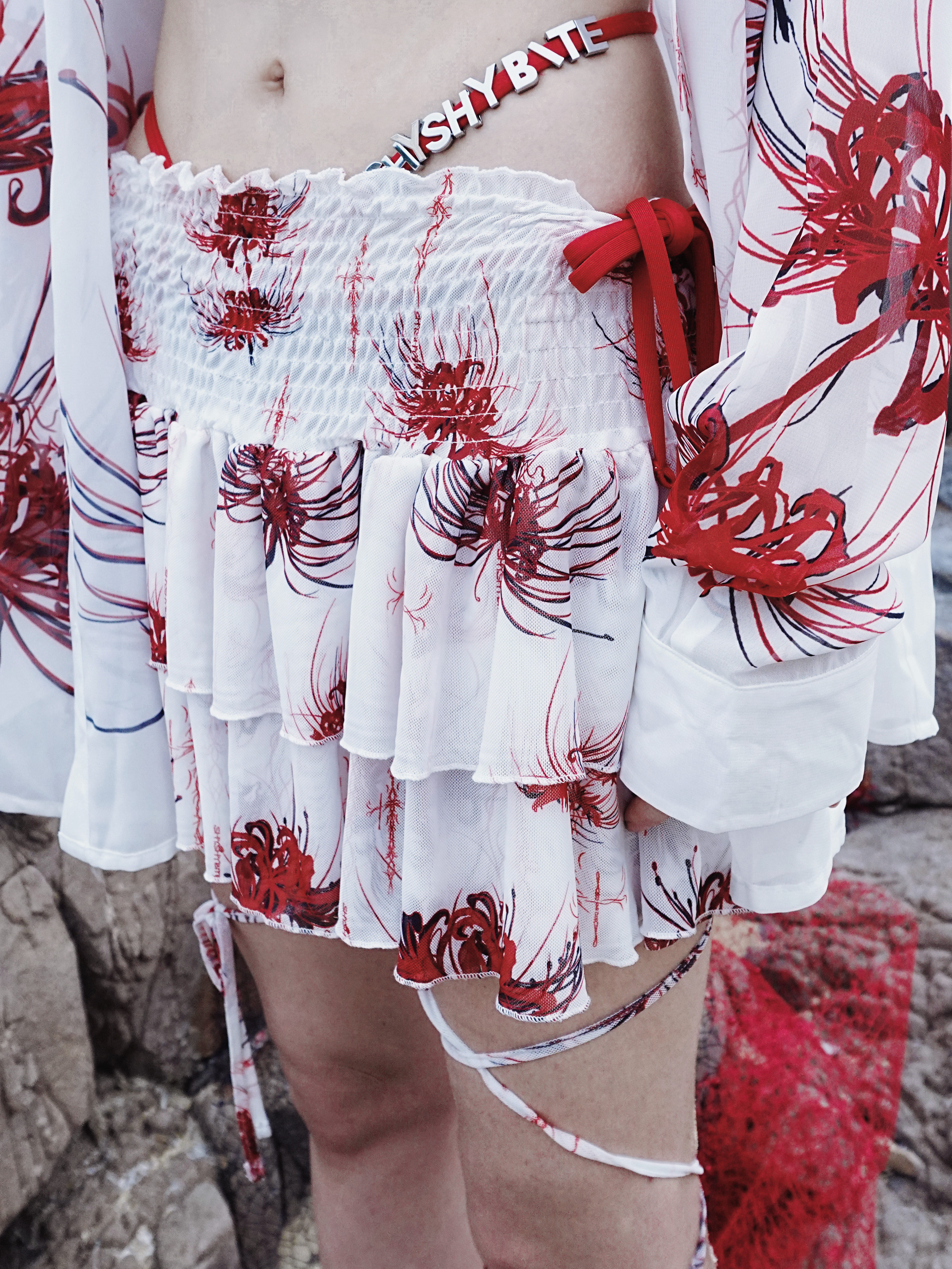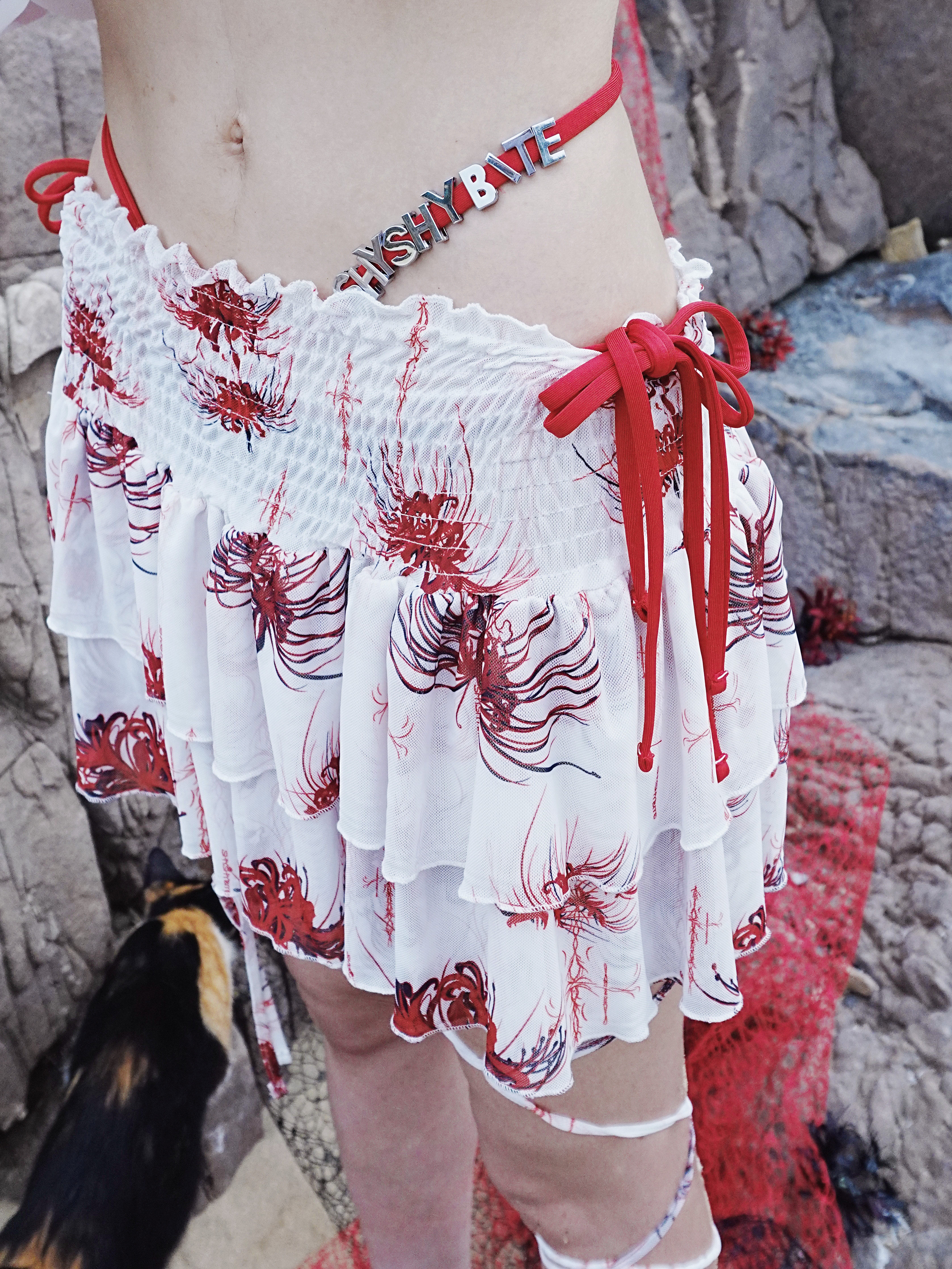 Cross & Spider Lily Full Print Tulle Beach Skirt - Black-Grey