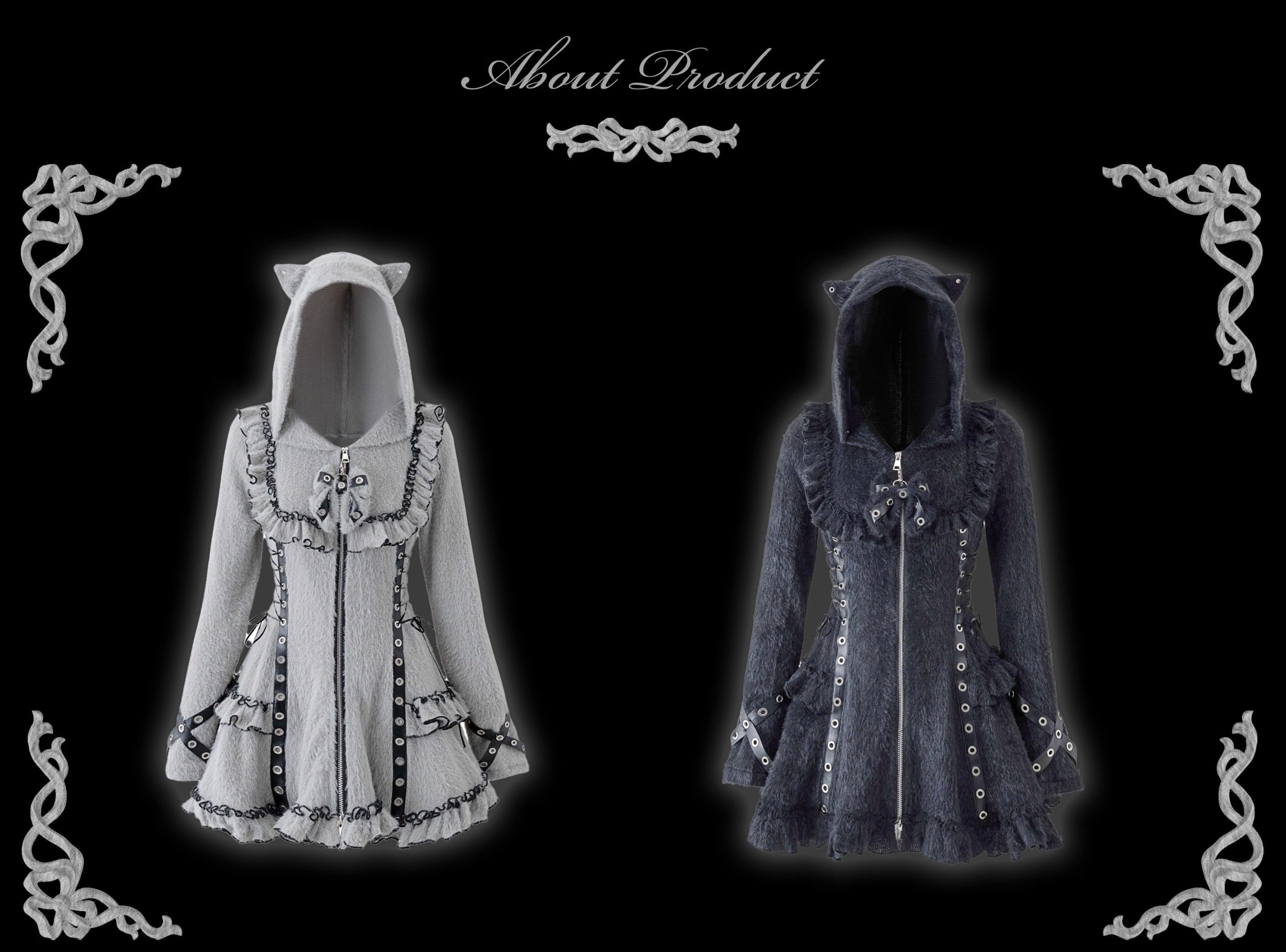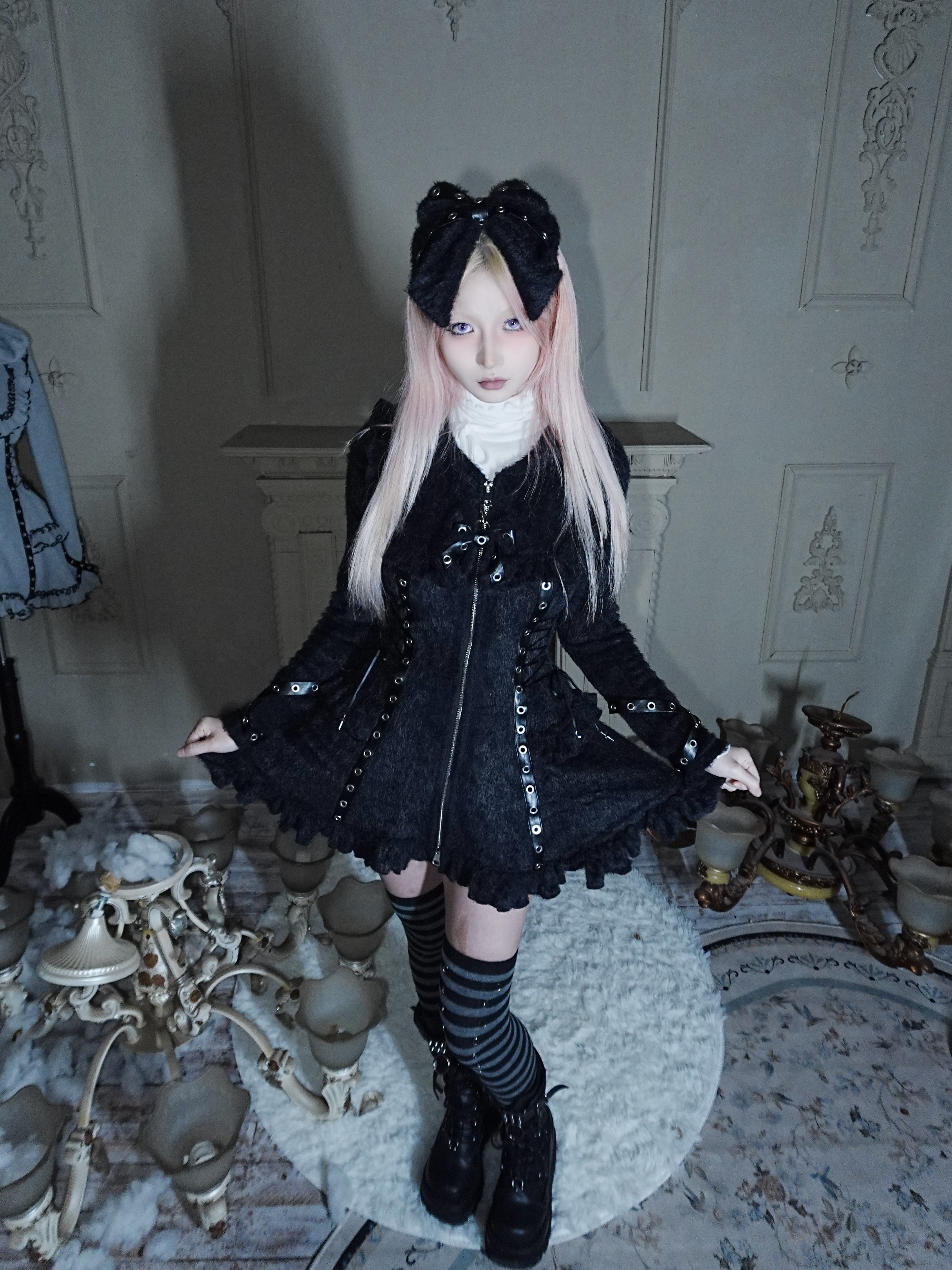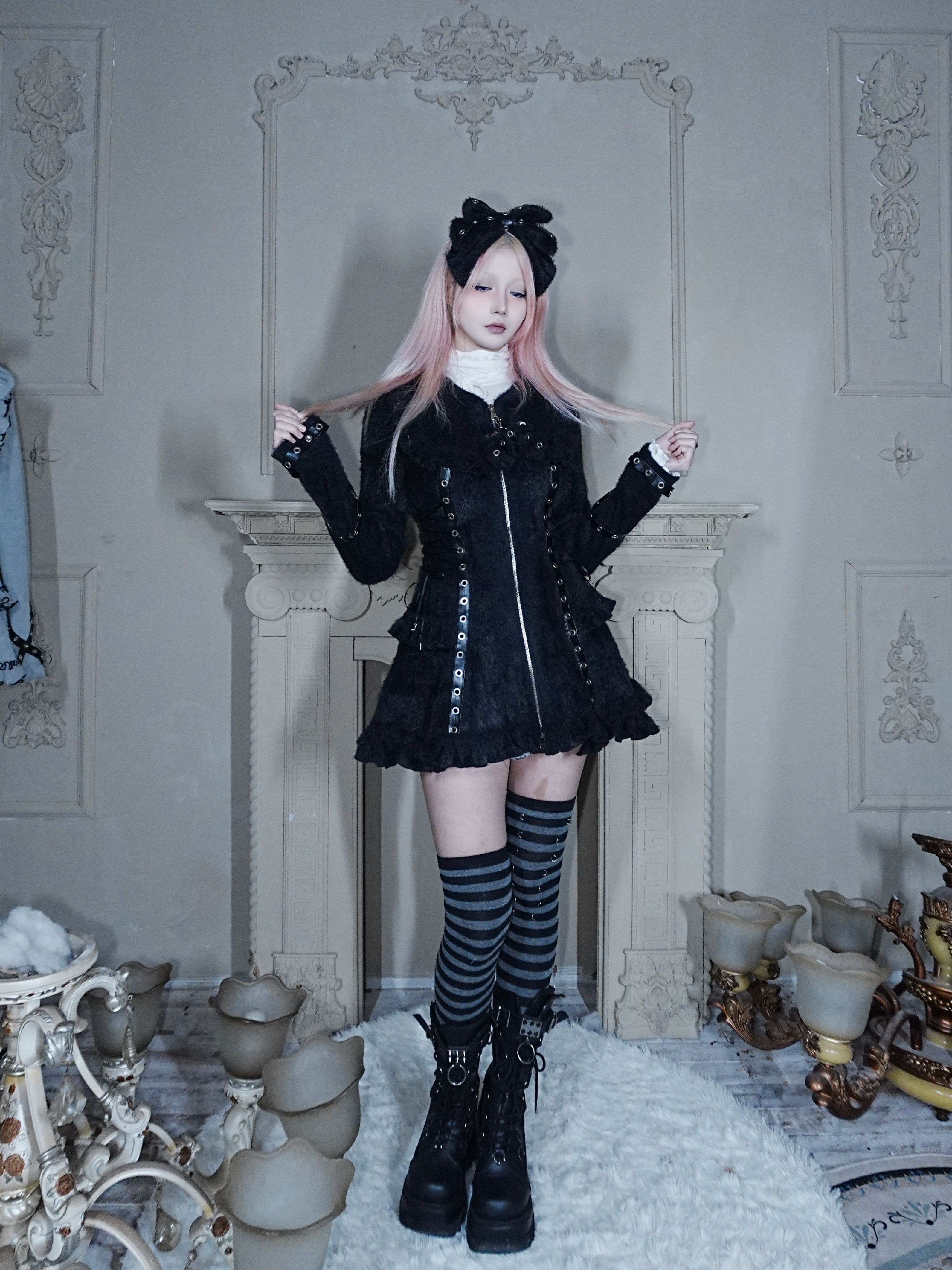 Fluffy Cat-Ear Hooded Dress - Black